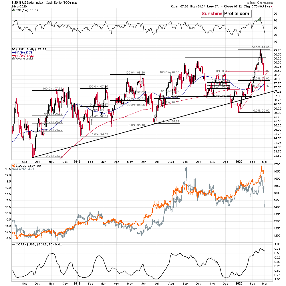 The technical thing that did change, was the USD Index chart, which shows USD's yet another powerful slide. And that happened regardless of the greenback having already reached a combination of support levels previously. What does it mean?