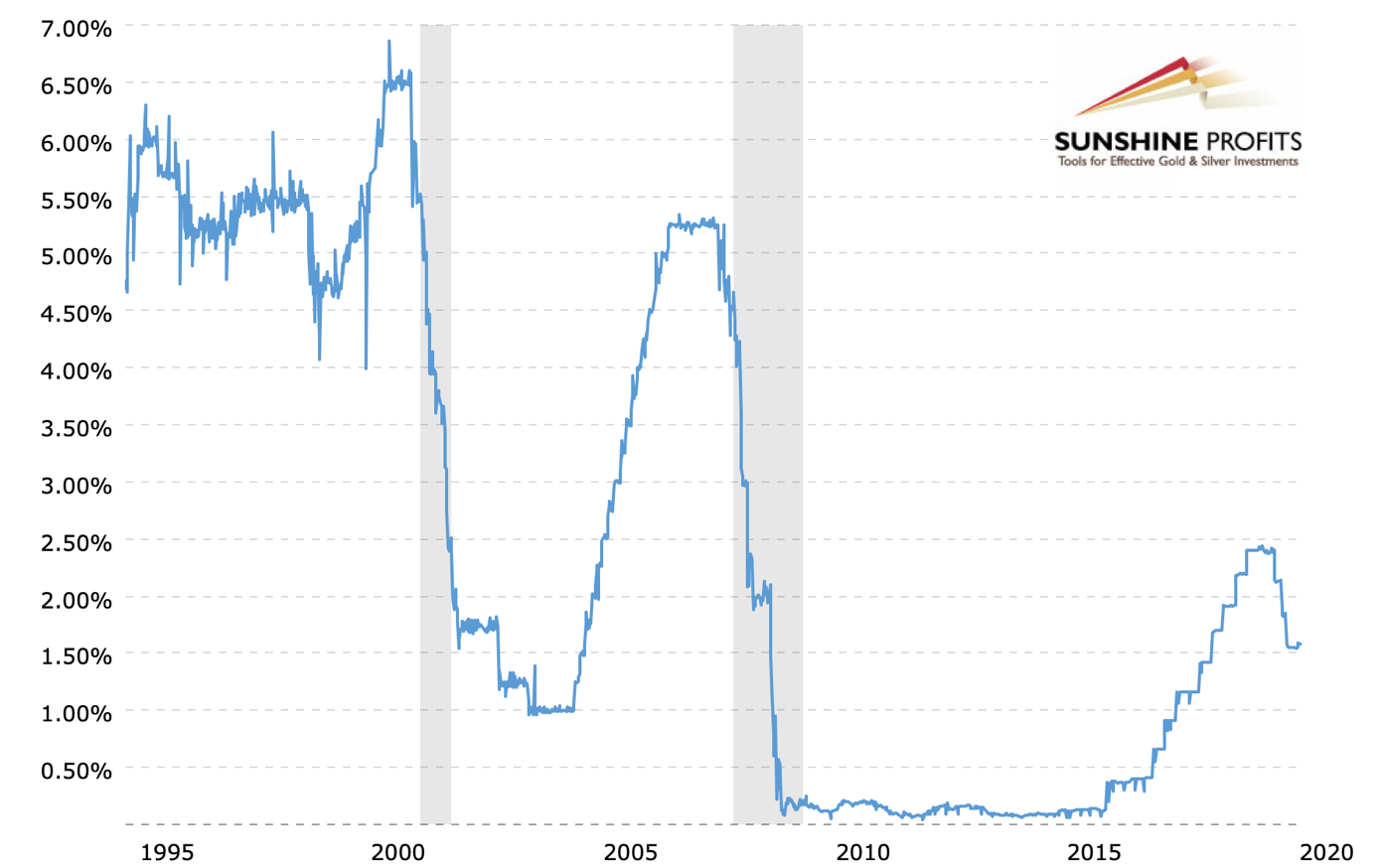 Now, the Fed started to cut rates in mid-2019. Gold moved higher and topped in early 2008. The rates were not cut once again yet, but it's almost certain that they will be cut given the market's expectations, so we practically know that the decline in rates is likely to accelerate. And yet, gold is not reacting by rallying anymore.